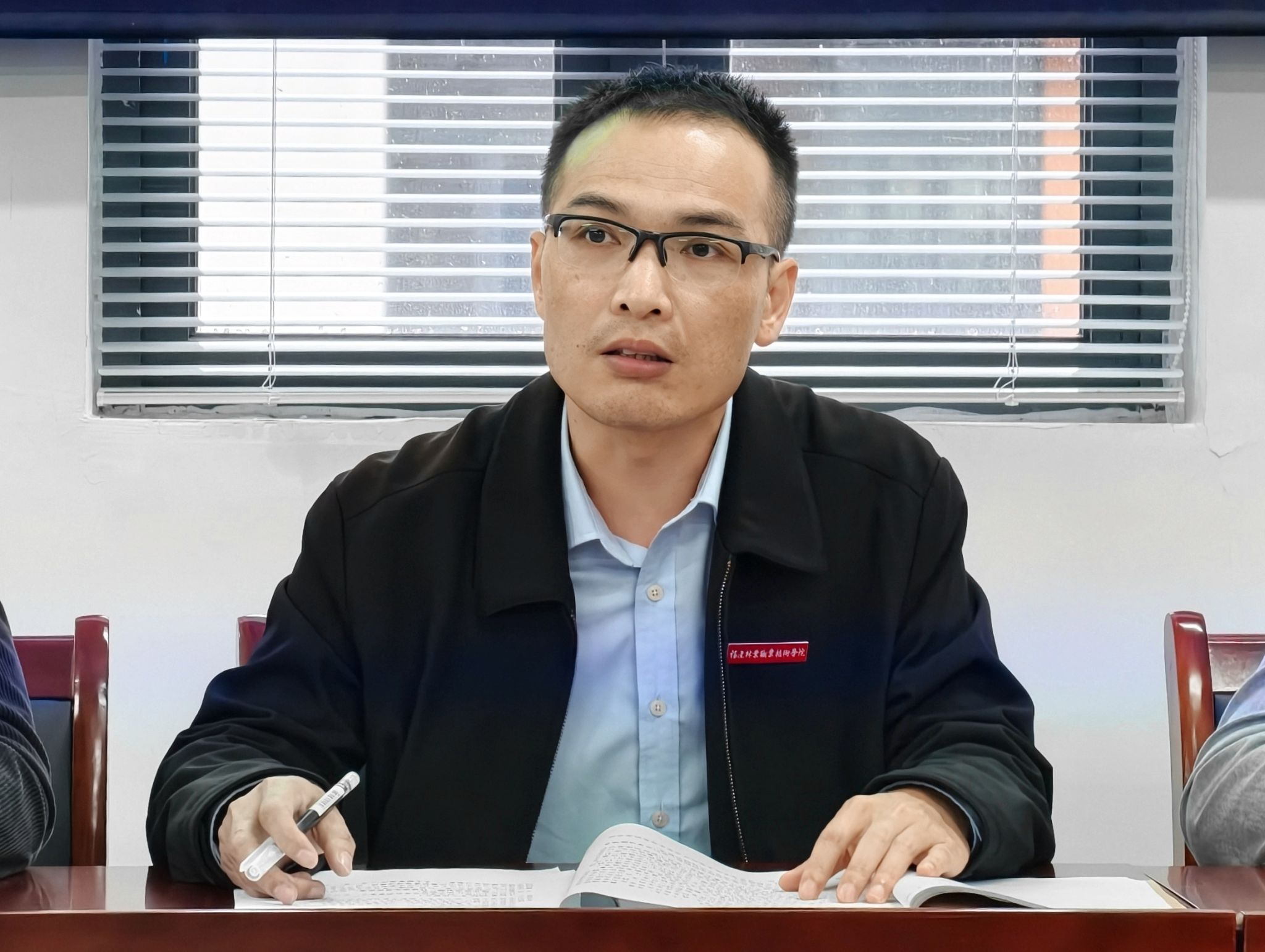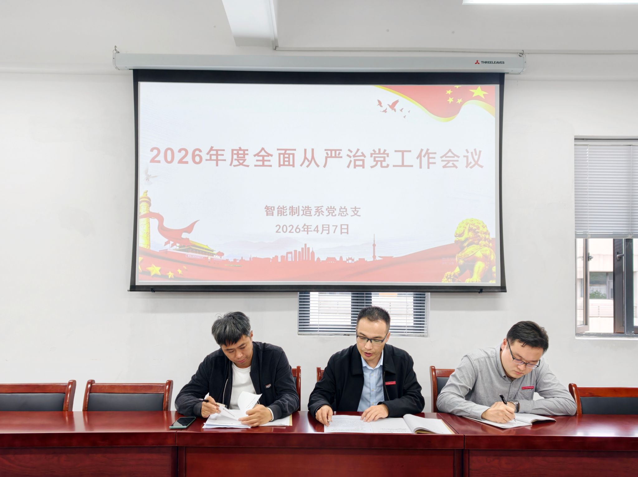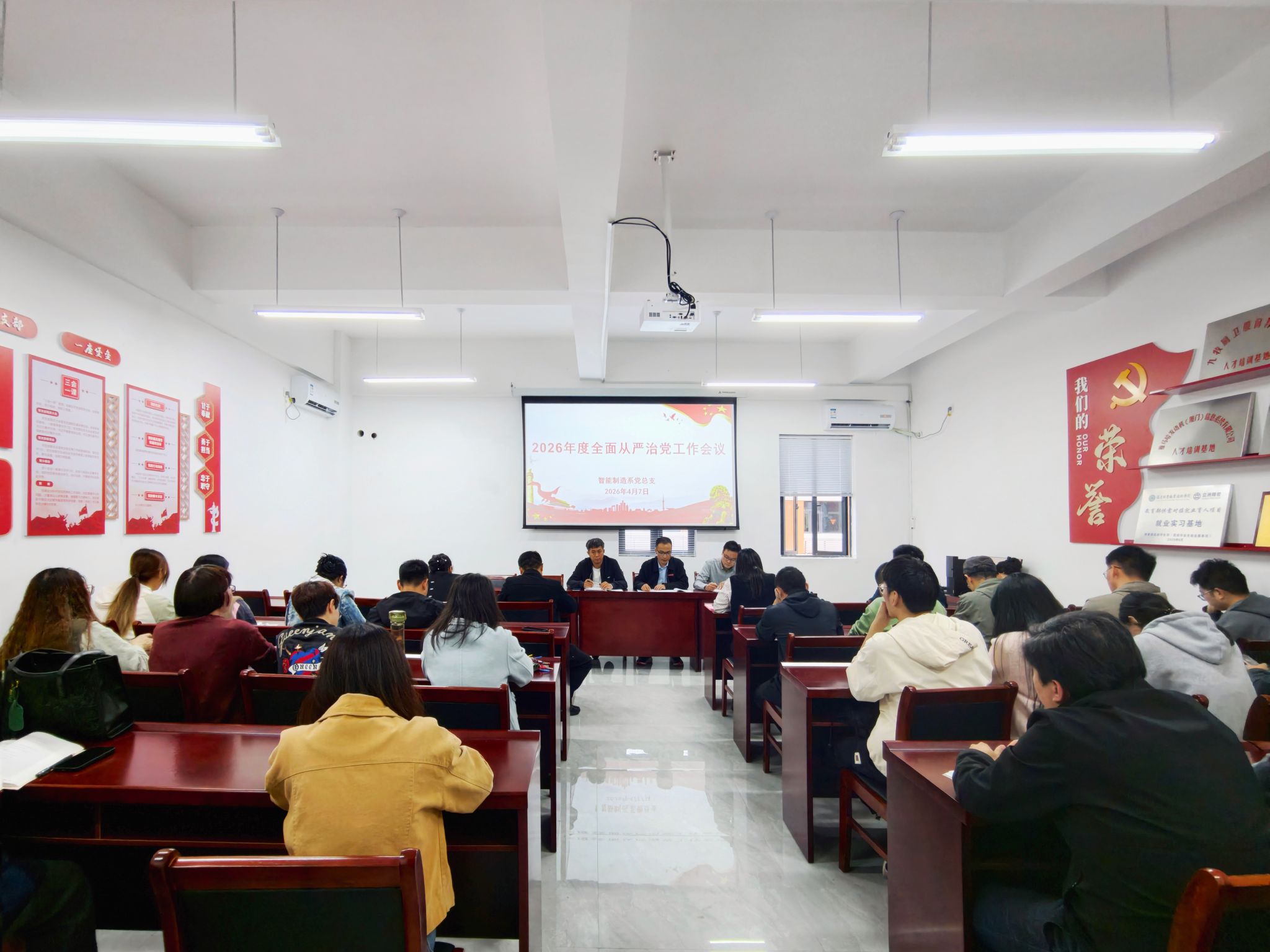 为贯彻落实院党委全面从严治党工作会议精神,4月7日下午,智能制造系在系部5楼会议室召开2026年度全面从严治党工作会议,系党政领导班子、系部全体教师参加了会议,纪委办综合科科长彭韬列席会议,会议由系党总支副书记(主持工作)林志鹏主持。