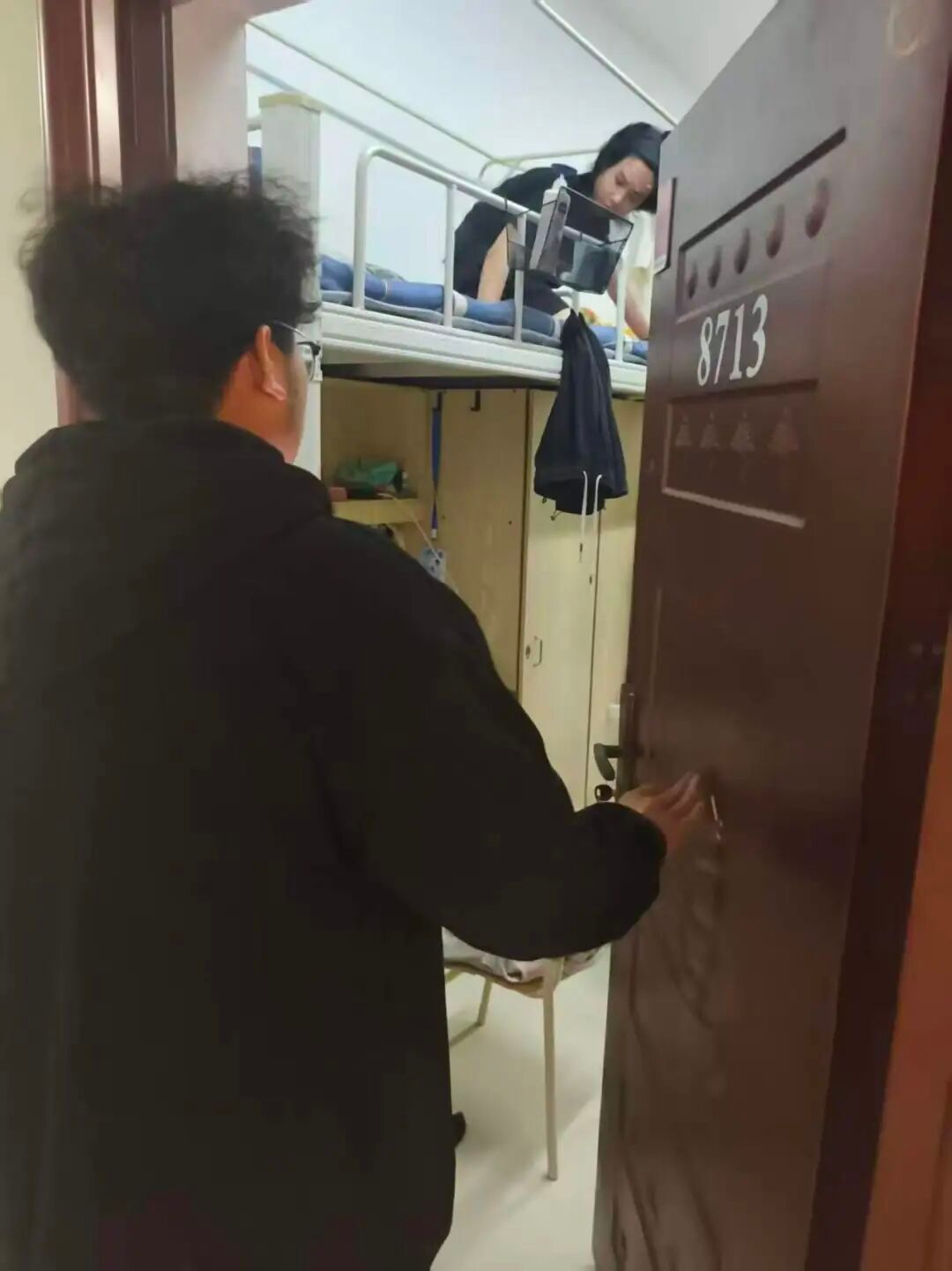 检查过程中,各部门工作人员各司其职、密切配合。宿管部工作人员手持检查记录本,凭借对宿舍布局的熟悉度,仔细排查储物柜、床铺角落等区域,详细记录违规电器的位置、种类等信息;女生部工作人员以细致认真的工作态度,逐一标注小功率违规电器及各类安全隐患;保卫部工作人员聚焦电路设施与消防通道,运用专业设备检测线路,认真登记电线老化、消防通道堵塞等问题。同时,工作人员在检查过程中逐一提醒同学们,假期期间宿舍无人时务必关灯关水,做好各项安全防范工作。