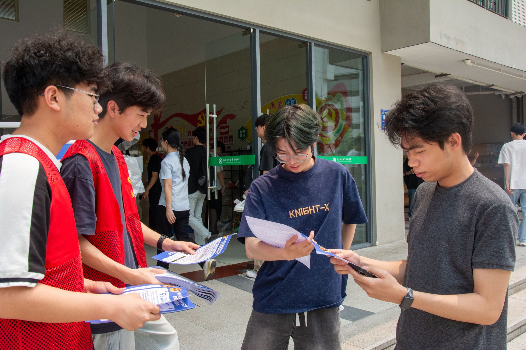 4月15日,智能制造系组织学生志愿者在智造楼和八号楼楼下开展反诈宣传活动。活动现场,志愿者们手持反诈宣传海报,向来往的同学们讲解近期高发的网络诈骗手法,如冒充客服退款、虚假兼职刷单,网络交友等,并用图文并茂的形式拆解诈骗套路,提醒大家“不轻信、不转账、不泄露”。同学们驻足观看海报、认真聆听讲解,并主动结合自身经历提出防范疑问。在“一问一答”的互动交流中,反诈知识变得更加生动具体。通过这种面对面宣传、点对点提醒的方式,有效增强了同学们的防范意识与辨别能力,切实为校园安全筑起了一道坚实的思想防线。