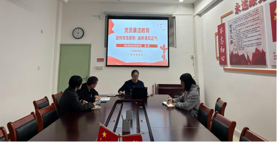 为扎实推进学习贯彻习近平新时代中国特色社会主义思想主题教育走深走实,进一步提升党支部的凝聚力和战斗力,2023年12月1日下午,招生就业处党支部书记陈莉老师为招生就业处党支部全体党员上题为“坚持党性原则 涵养清风正气”的党员廉洁教育党课。