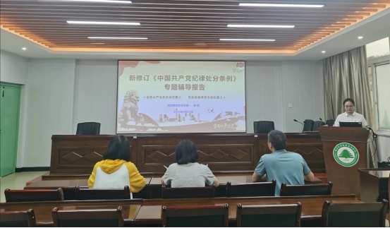 为深入学习宣传贯彻党的二十大精神,学习贯彻习近平总书记关于党纪学习教育的重要讲话重要指示精神,2024年4月24日上午,招生就业处党支部书记陈莉为支部全体党员作新修订《中国共产党纪律处分条例》专题辅导报告。